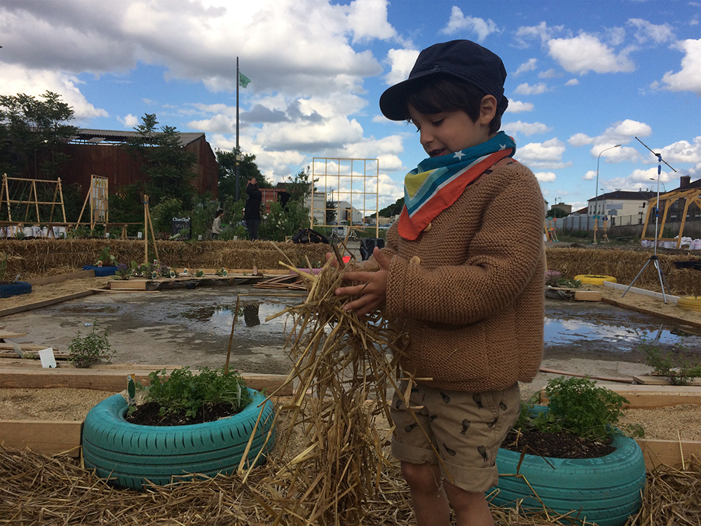 Toutes les installations sont "faites maison" : hamacs, carrés potager, houblonnerie, scène...
